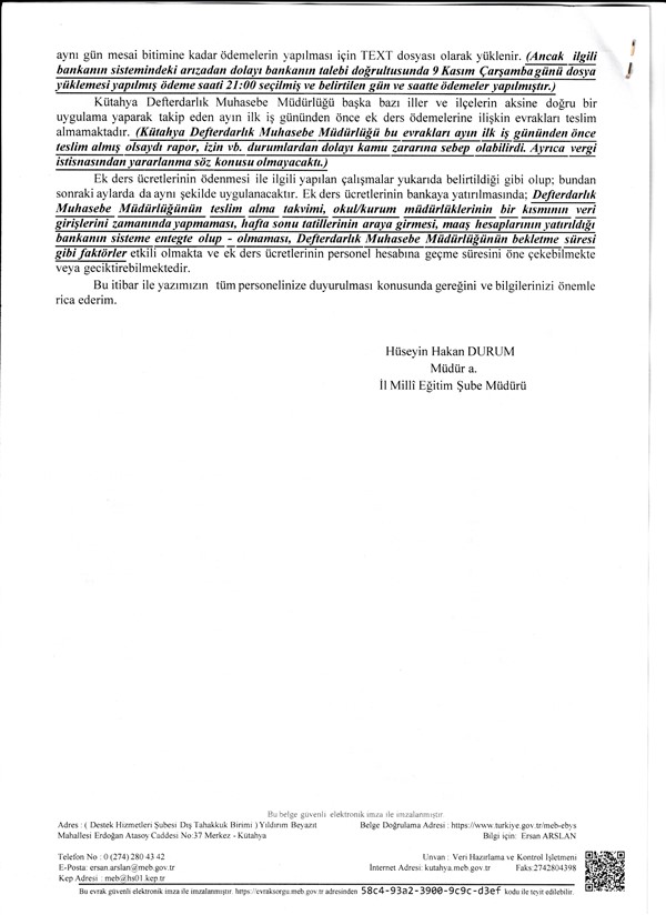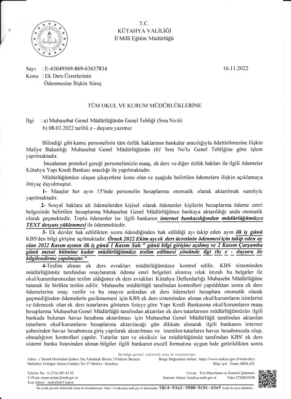 Ek derslerin banka tarafından neden geç yatırıldığı ile ilgili eğitim çalışanlarına ve tarafımıza bilgi verilmesi konusunda;